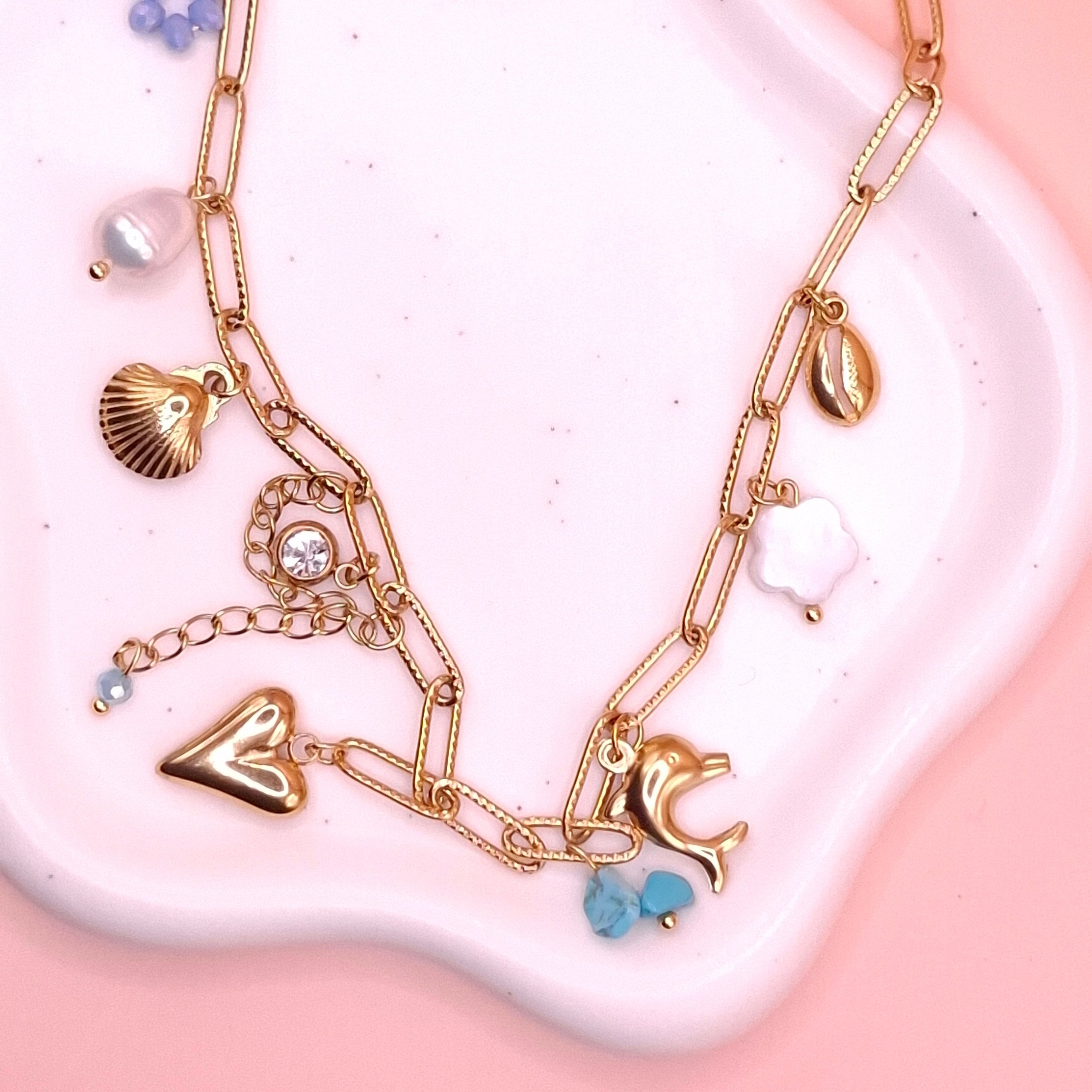 Nos bijoux supportent l’eau douce (douche, pluie), mais pour préserver leur éclat plus longtemps, il est préférable d’éviter le contact prolongé avec l’eau salée, le chlore et les produits cosmétiques